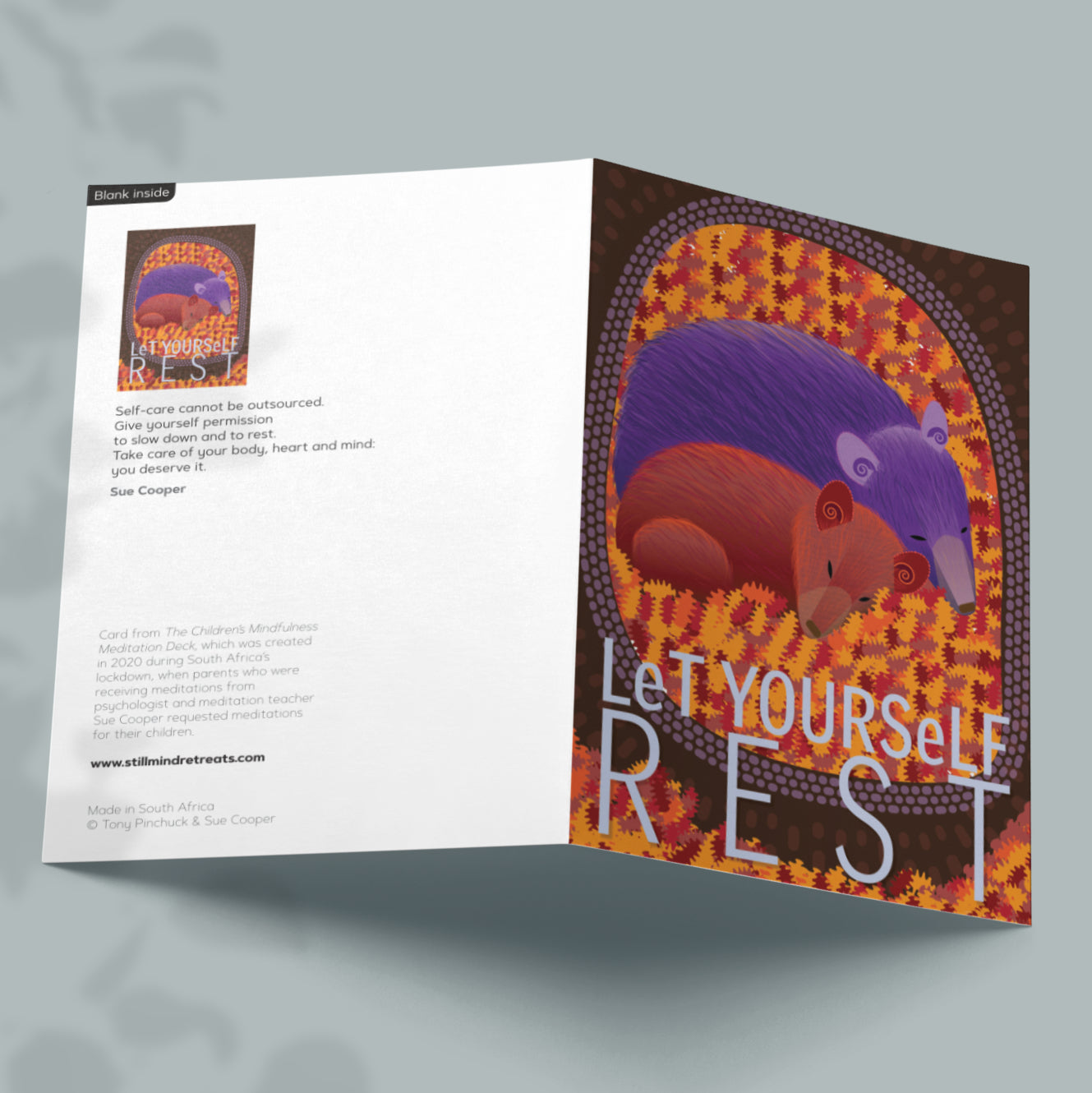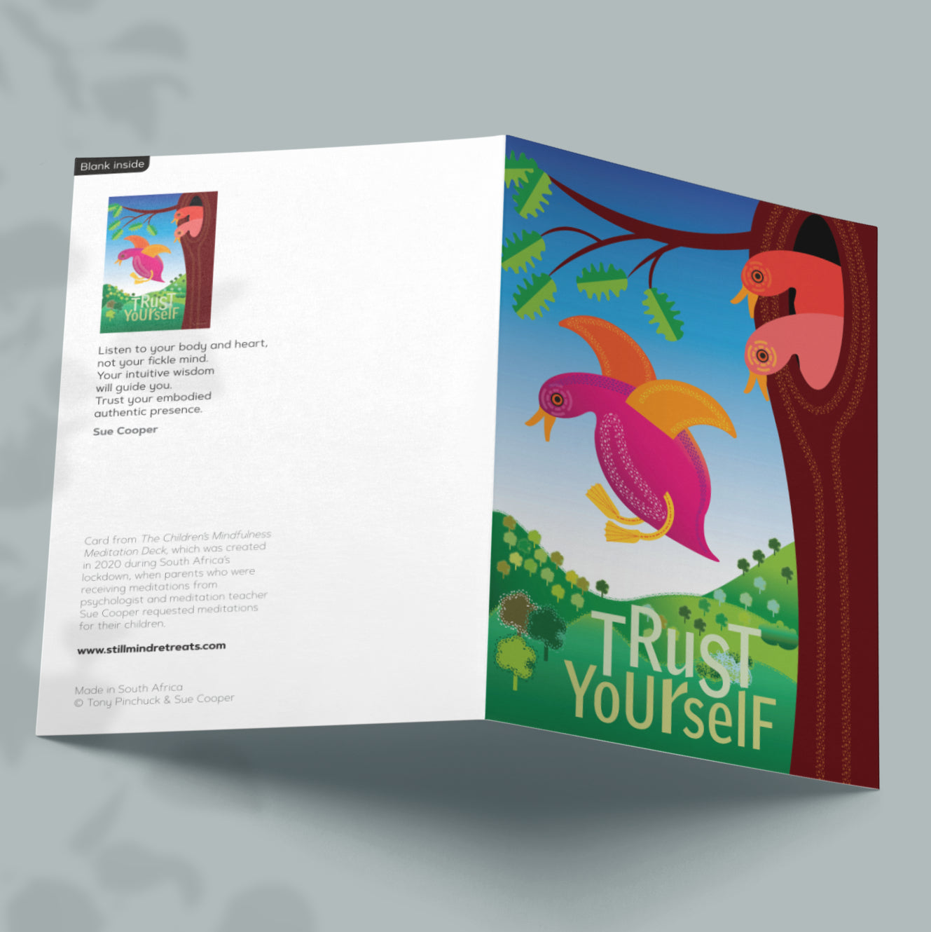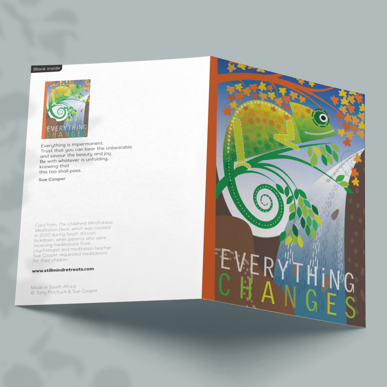 Inspired by ancient Buddhist wisdom, this collection of greeting cards is devised by veteran Cape Town meditation teacher Sue Cooper and designed by Tony Pinchuck. The cards offer ancient insights wrapped in striking, handcrafted designs. From the playful to the profound, each card is a quiet nudge to embrace change, find stillness, and celebrate connection.